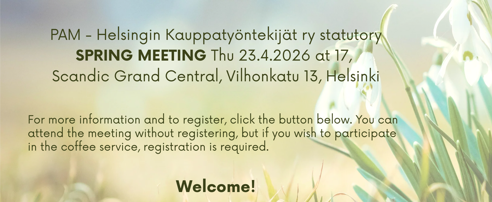 23.4.2026 Spring meeting of the union branch, Scandic Grand Central, Vilhonkatu 13, 00100 Helsinki. Binding registrations and free cancellations by 22.3.2026.